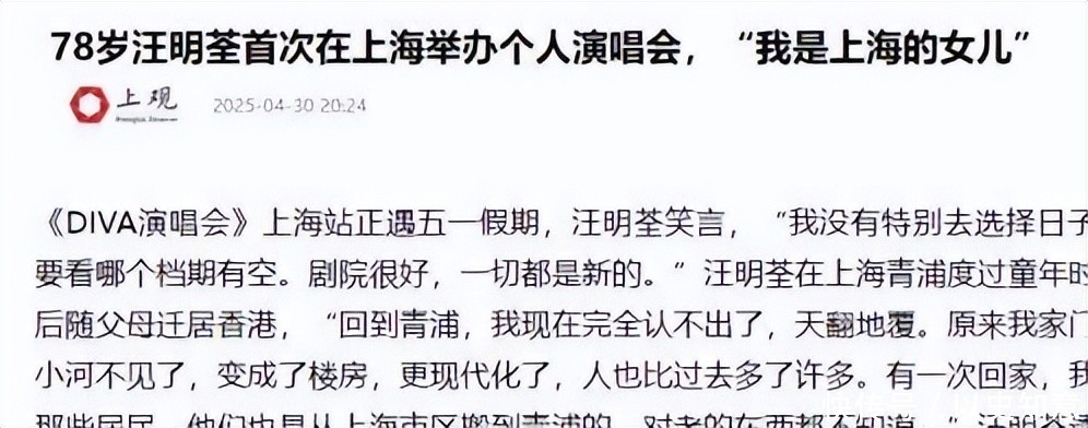 2025𻂋月,当汪明荃在社交媒体上官宣要在上海开个唱的时候,整个网络瞬间炸了锅。